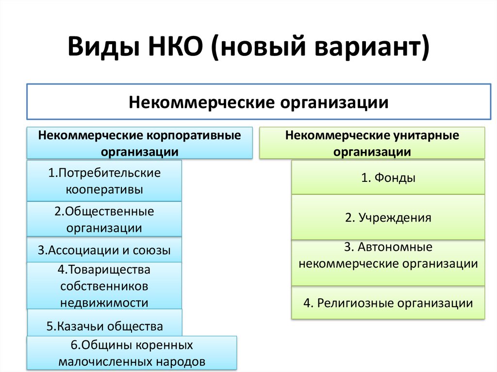 Разобраться с определением наиболее распространенных форм НКО по отношению к целям организации поможет таблица:
