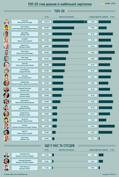 ГлавнаяВ миреСколько зарабатывают лидеры стран мира